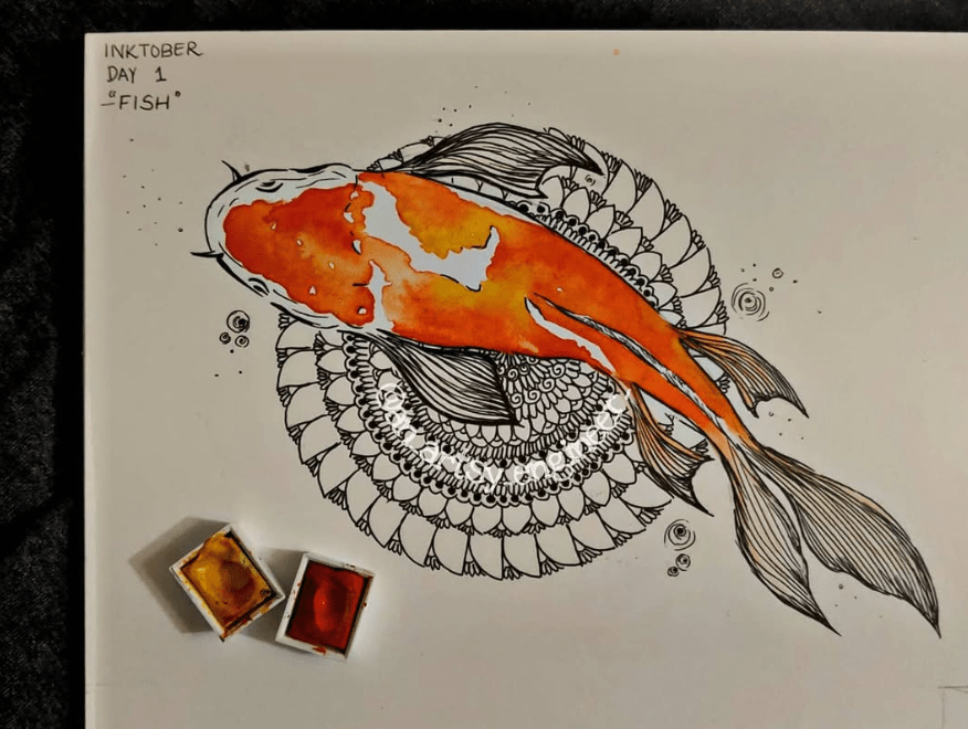 “Koi”. Inktober 2020. Mixed media on paper.