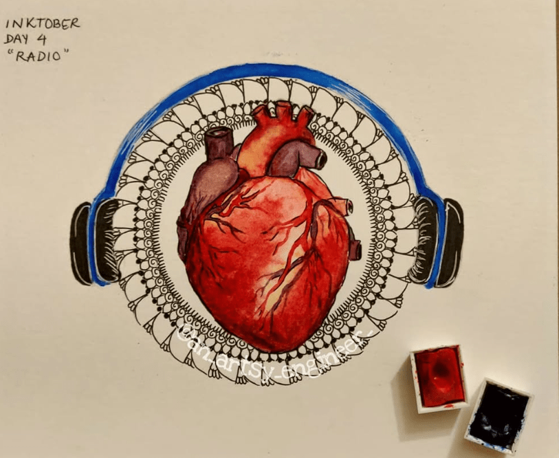 “Radio”. Inktober 2020. Mixed media on paper.