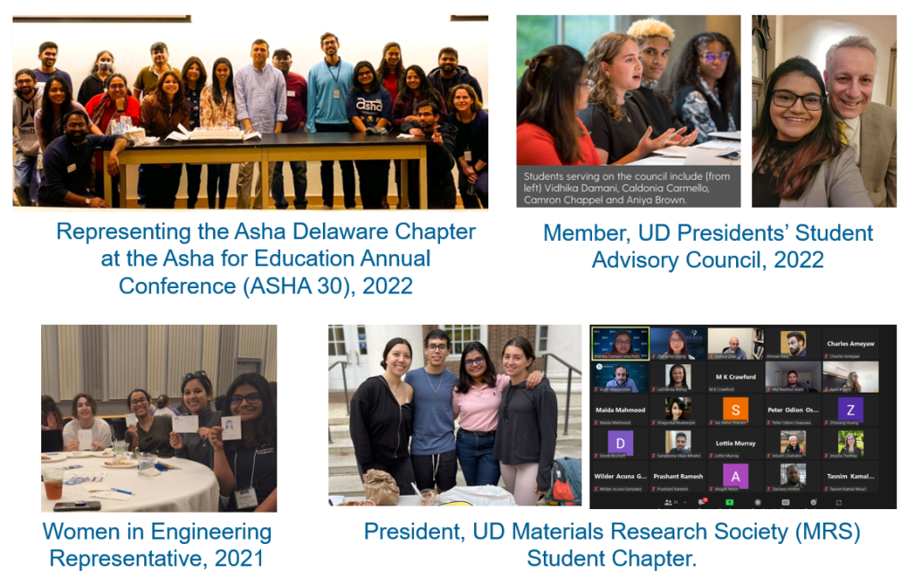 - 2019 – 2022: Involved with the UD Materials Research Society Student Chapter (UD MRS).