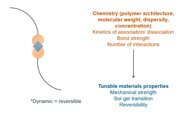 Project overview: Dynamic covalent gels are a class of polymer networks that consist of reversible, and hence dynamic, covalent bonds. These gels have found applications in wastewater remediation, as scaffolds for tissue engineering, and in drug delivery, with potential for use as templates for soft conductive gels, stimuli-responsive materials, and tissue mimics. The range of mechanics of these gels is dictated by the molecular structure of the polymer backbone, such as the polymer architecture, molecular weight, number of crosslinking points, and mechanism of crosslinking. However, the effect of the polymer architecture on the mechanics is not well understood. In this work, I am developing dynamic covalent gels with varying polymer architecture, and studying their mechanical properties under shear. The intellectual merit of this work lies in the design of new polymer backbones to elucidate the effect of gel architecture on the mechanics. The broader impacts of this work include the development of materials platforms with tunable mechanical properties, with potential for further use in self-healing gels and composites. This is an on-going project.